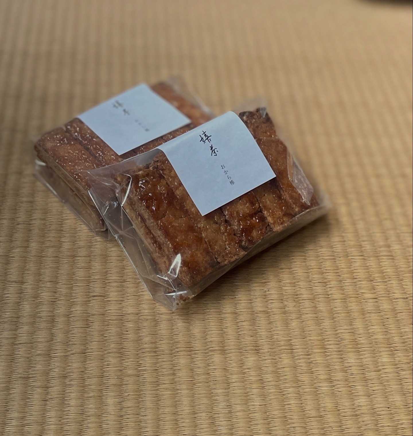 「おから棒」 製造:嬉茶 ロゴ、グラフィックデザイン:猿山修 制作:嬉茶 “okarabo” confectionery: ureshisa, logo+graphic design: osamu saruyama, production: ureshisa